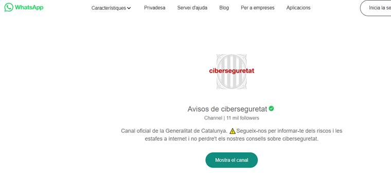 Canal de WhatsApp de l'Agència Catalana de Ciberseguretat